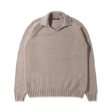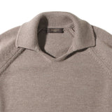 台襟のないスキッパー型ポロは、ニットらしい柔らかな襟元とミニマルなデザインが魅力です。ボタンレス仕様のためVゾーンが自然に開き、首元をすっきりと見せてくれます。