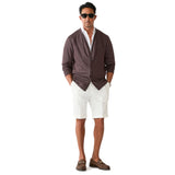 「リネンジャージー」素材のカーディガンが登場。麻独特のシャリ感と快適な伸縮性を併せ持ち、羽織として美しく決まる端正なシルエットに設計された一着です。
