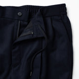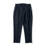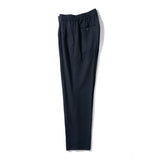 デザインは、全体的にゆったり目のシルエットが特徴のツープリーツ。腰廻りにゆとりがありながら も、メリハリのあるテーパードラインですので、リラックスしつつも品のあるムードです。シーズン レス性のある素材とふわっと開放感のあるフォルムのため、秋冬シーズンのみならず、年間通して⾧い期間着用でき、汎用性が高いところも魅力です。共地のジャケットを合わせて、大人の余裕を感じ させる、リラクシングなセットアップスタイルを是非お楽しみください。