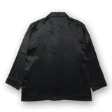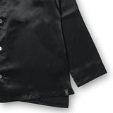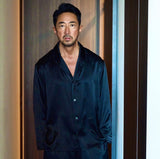 そこで、これまで自宅ではほとんどの時間をTシャツと短パンで過ごしていましたが、睡眠のときぐらいはシルクパジャマを着てみよう、と思い立ったわけです。シルクは、素肌に潤いを与え、美しく整えるといわれていて、人肌に限りなく近くて、敏感肌やアトピー肌、乾燥肌の人でも安心して着られるんだとか。美容にも良さそうですしね。ただし、色だけは僕好みのシックなブラックを別注させていただきました。