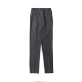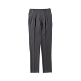 腰回りにはプリーツを配しながらも膨らみを抑え、ストレートなアウトラインを描きます。裾にかけては、現代の感覚から見ても驚くほど細身に映るシャープなシルエット。クラシックとモダンが交差する、その狭間を体現した一本。