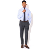 素材には上質なウールを使いながら、日常的にはける雰囲気もあり、ドレスにもカジュアルにも自在に対応。ネイビー、チャコールグレイ、ミディアムグレイという3色の展開も、どれもすごく使いやすいと思います。たとえば、ネイビーなら白シャツと合わせてクリーンに、チャコールグレイなら黒のタートルでシックに、ミディアムグレイならジャケットスタイルを軽やかに見せてくれます。クラシックなジャケットはもちろん、レザーブルゾンやミリタリーアウターとも好相性。どんなスタイルにも自然になじんで、品のある佇まいを保ってくれるでしょうね。