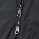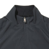 撥水性とストレッチ性を兼ね備えたポリエステル100%生地と、ウール100%のジャージーを一体で仕立てたスイングトップ型。ポリエステル面ではシャープでモダンな印象に、ウール面でとエレガントな印象を演出できます。体のラインを拾いすぎないリラックス感のあるバランスで、肩から袖にかけての可動域も確保。