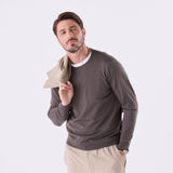 f-quattroは、非常に品質の高いスーパーエクストラファインメリノウールを使用。繊維の細さはベビーカシミヤにも匹敵する14.5µ(=super180's)。繊維長が長く伸縮性に優れ、シルクのような滑らかさとしなやかさを感じられる素材です。これを美しい天竺目を作り出すクラシックマシーンで編み上げ、着心地がよく見た目も美しいニットに仕上げました。素材そのものの質の高さと希少なマシーン、緻密な人の手仕事から生まれる究極のベーシックニットをご体感ください。※原料に限りがある為、年内の追加生産はございません。