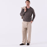 さらに、もうひとつ、こだわったのが素材です。非常に希少なスーパーエクストラファインメリノウールを使っていて、繊維の細さはベビーカシミヤにも匹敵する14.5µ(=super180's)。このレベルの原毛は、世界でもあまり採れず、流通量も限られているので、日本にはそんなに入ってこないのですが、今回特別に入手することができたことから、この企画が実現したんです。
