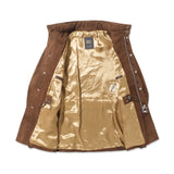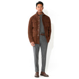 外装には、しっとりとした質感と深みのある発色が魅力のゴートスエードを採用。クラシックな4ポケット仕様や比翼仕立てなど、オリジナルのディテールを踏襲しながら、全体はより洗練されたバランスに再構築されています。