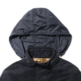 素材に選んだのは、しっとりとした質感と奥行きのある表情が魅力のゴートスウェード。オリジナルの4ポケットや比翼仕立てといった基本的なディテールは踏襲しながらも、上質な素材に替えることで一気に品格が生まれます。さらに、M-65本来の「隠しフード」も、きちんと襟元に収納。あくまで実用性を背景にしたディテールですが、こういう「語れる要素」があると、服はぐっと楽しくなるんですよね。