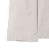 生地の段階で洗い加工を施し、洗いざらしのシワ感を残したまま、あえてムラが出るように仕上げることで、生地表面には自然な凹凸と奥行きのある表情を演出。均一すぎない素材感が、シンプルなデザインに豊かなニュアンスを与えています。