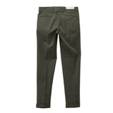 まず定番中の定番が、1プリーツのコットンパンツ「BG07」。ストレッチ性のあるツイル織りのコットン生地は、はいた瞬間から心地よく、それでいて見た目は驚くほどエレガントです。スリムなシルエットにワンプリーツを組み合わせることで、カジュアルにもジャケットにも自然になじみます。製品染めのコットンならではの味わいがはき込むほどに増していくのも魅力で、どこか昔のラルフ・ローレンのチノーズを彷彿とさせる雰囲気がありながら、あくまでイタリア仕立ての美しさがあります。個人的にも毎シーズン買い足しているモデルで、気づけば全色揃ってしまいました。なかでも出番が多いのはホワイト、ネイビー、グレー。この3本があれば、一年中活躍してくれます。