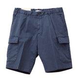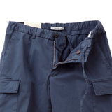両サイドのフラップ付きカーゴポケットが程よいアクセントになりつつ、片玉縁ポケットがカジュアル感を抑えて上品な印象に。BRIGLIA刻印ボタンがさりげない高級感を添え、涼しく穿けるのにラフになりすぎない、きれいめカーゴショーツに仕上がっています。