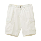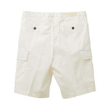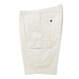 両サイドのフラップ付きカーゴポケットが程よいアクセントになりつつ、片玉縁ポケットがカジュアル感を抑えて上品な印象に。BRIGLIA刻印ボタンがさりげない高級感を添え、涼しく穿けるのにラフになりすぎない、きれいめカーゴショーツに仕上がっています。