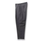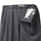 上質なトロピカルウールを用いた、2プリーツ仕様のワイドテーパードパンツ。