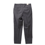 プリーツはイン&アウトの2プリーツ仕様を採用し、腰まわりにゆとりを持たせながら、裾に向かって美しく絞ったワイドテーパードシルエットに。動くたびに生まれる自然なドレープが、リラックス感の中にも洗練された印象を演出します。ウエストはサイドのみシャーリング仕様とすることで、イージーな穿き心地と端正な見え方を両立しています。