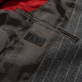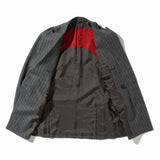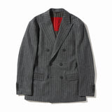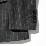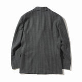 ジャケットは、ネイビーがシングル2ボタン、ミディアムグレイのほうがダブル6ボタンで、ともにセットアップで着られる共地のスラックスも用意しています。チョークストライプとはいっても、柄の主張は控えめで、上品に見えるのもこだわった点。メランジェ調の素材感も、着こなしに奥行きを与えてくれます。