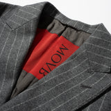 フロントの打ち合いは浅めに設定することで、重厚感が和らぎ、モダンな仕上がりに。また、MOVBの特徴でもある、人間工学の観点からも考慮したMoving仕様は継続して搭載。日々動かしている人間の腕をより窮屈なく動きやすくするために、肩甲骨から肩周りの裏地に特殊な縫製を施しています。