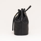 小ぶりな巾着バッグながら真鍮パーツが際立ちワンランク上の休日スタイルを演出してくれ、レザーバッグながらもどこかリラックスした雰囲気を醸し出す、大人の装いにふさわしいバッグです。